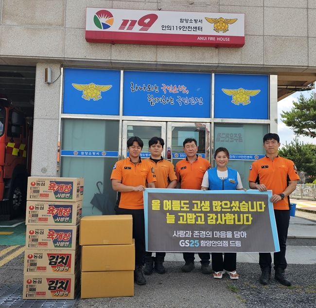 경남 함양군 GS25 안의점 송미향 대표는 밤낮으로 노력하는 공무원들을 위해 라면과 음료 등 간식을 전달해 감사함을 전했다.