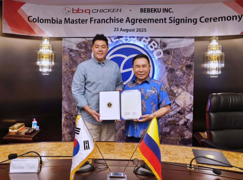 지난 24일 제너시스BBQ 그룹은 본사에서 콜롬비아 현지 기업 베베쿠사(Bebeku Inc)와 마스터 프랜차이즈(MF, Master Franchise) 계약을 체결했다. 이번 계약식에는 윤홍근 제너시스BBQ 그룹 회장과 마이클 박 베베쿠사 대표이사 등 양사 주요 관계자들이 참석해 글로벌 협력의 새 출발을 함께했다.