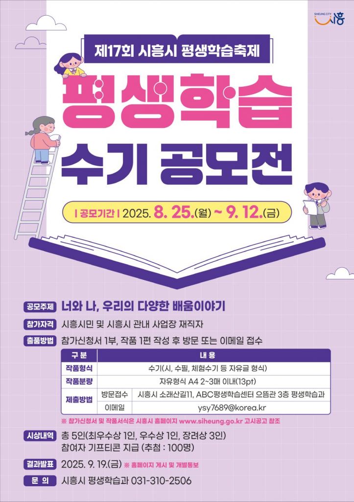 경기도 시흥시는 평생학습을 통한 변화와 성장을 경험한 시민들의 사례를 발굴하기 위한 '평생학습 수기'를 다음 달 12일까지 공모한다.