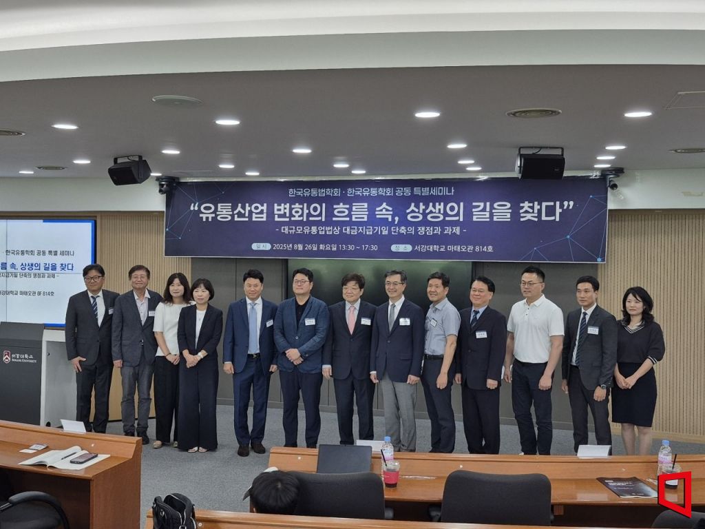 한국유통법학회와 한국유통학회는 26일 오후 서울 마포구 서강대학교에서 '대규모 유통업법상 대금지급기일 단축의 쟁점과 과제'를 주제로 공동 특별세미나를 개최했다.