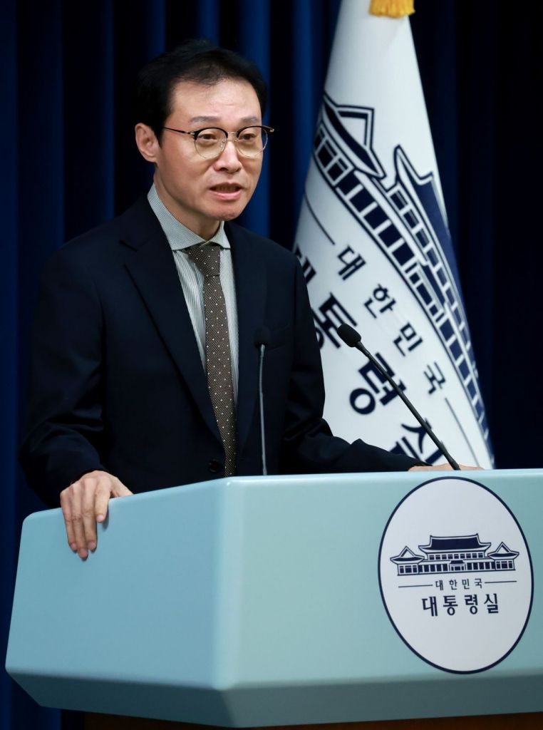 이규연 대통령실 홍보소통수석이 21일 서울 용산 대통령실 청사에서 이날 열린 대통령 수석·보좌관 회의 관련 브리핑을 하고 있다. 연합뉴스