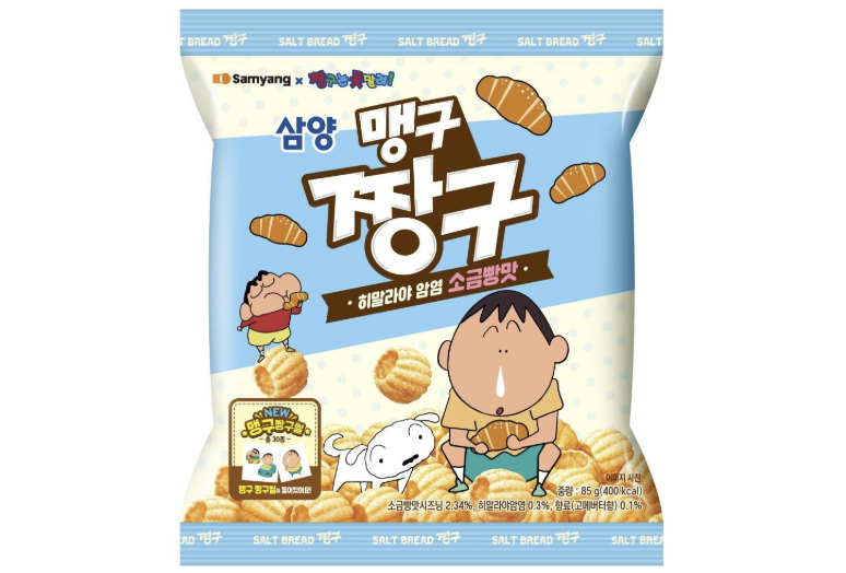 맹구짱구는 지난해 출시한 흰둥이짱구에 이은 짱구는못말려 캐릭터 시리즈 제품으로, 소금빵맛을 적용해 새롭게 선보이는 짱구 과자다.