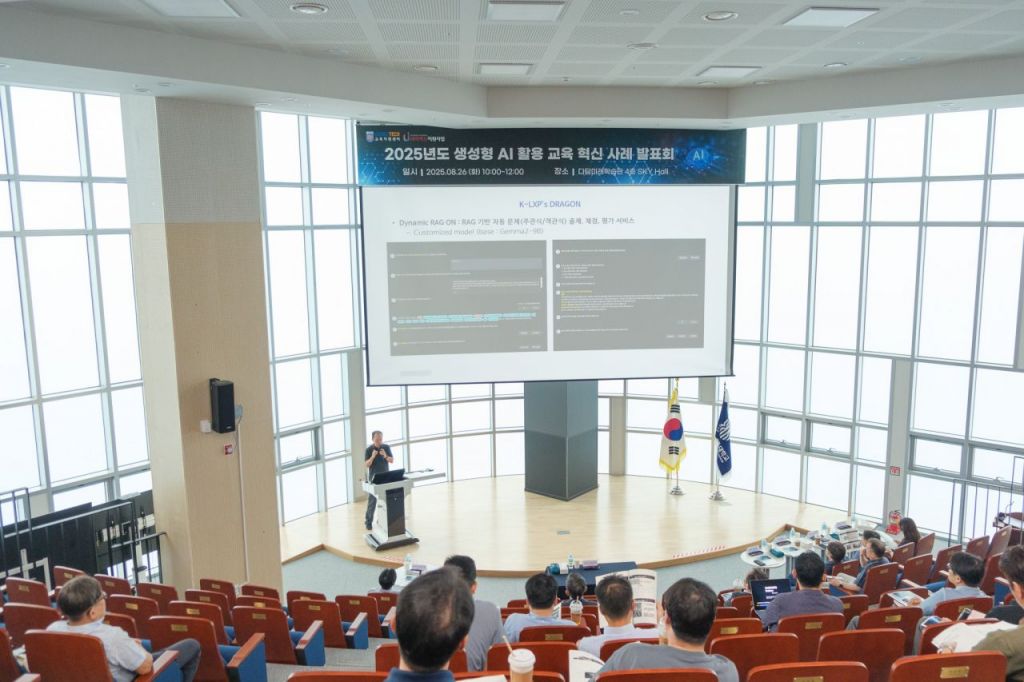 한국기술교육대학교는 지난 26일 교내 다담미래학습관 하이브리드 스카이홀에서 ‘2025학년도 생성형 AI 활용 교육혁신 사례 발표회’를 가졌다./한기대