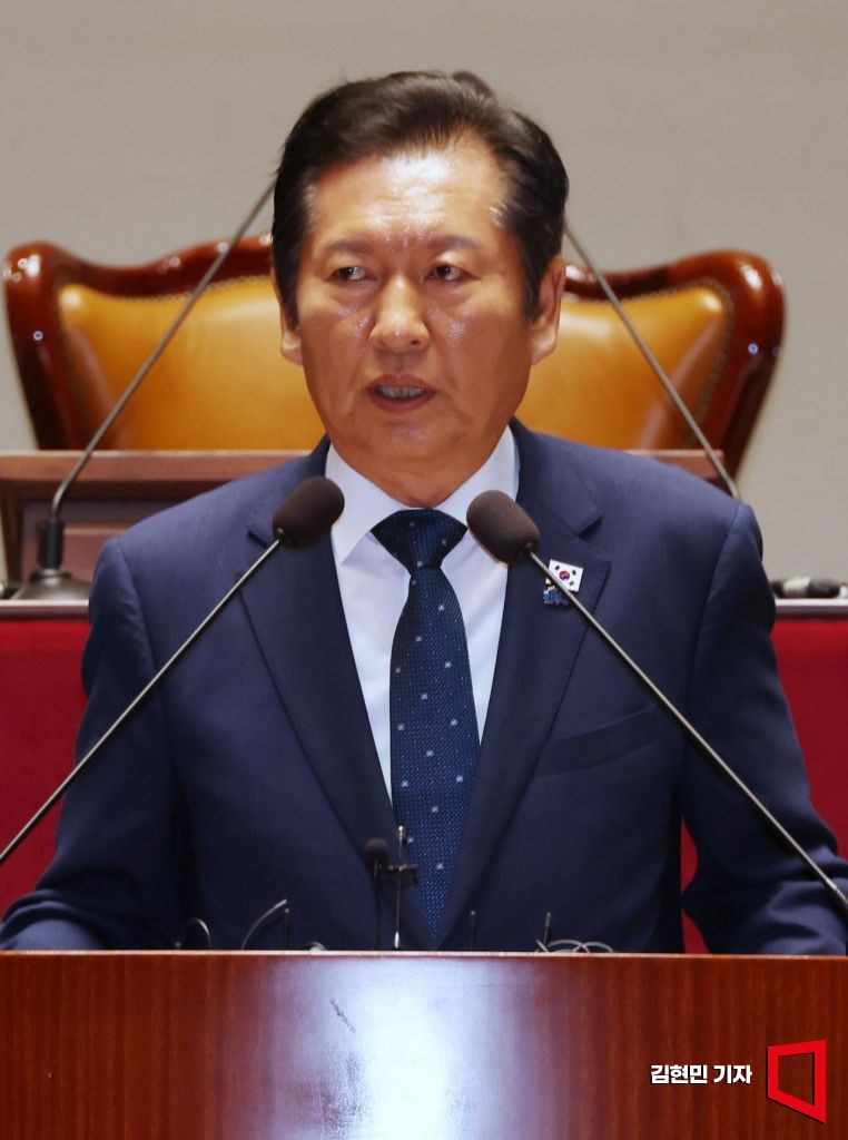 정청래 더불어민주당 당대표가 한미정상회담 관련 공세를 펼치는 국민의힘에 대해 "국민적 평가가 후함에도 불구하고 도로 윤석열당, 도로 내란당이 된 그들의 눈에는 그렇게 비치지 않는 것 같다"고 비난했다.