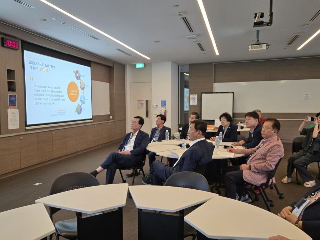 김경희 시장 등 이천시 대표단이 싱가포르에서 현지 평생교육 정책에 대한 설명을 듣고 있다. 이천시 제공