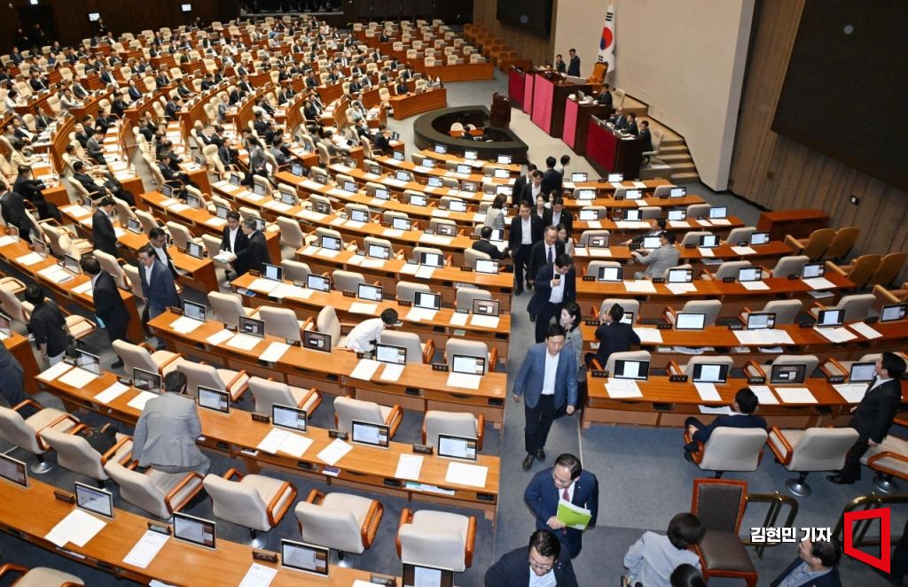 국회는 27일 본회의를 열어 비쟁점 법안 처리에 나섰지만, 야당 몫 인권위원 선출안 부결에 항의하며 국민의힘 의원들이 전원 퇴장함에 따라 민주당 주도로 대부분의 법안이 처리됐다.