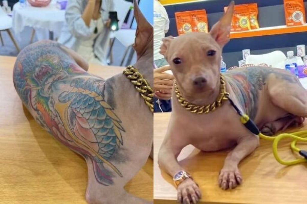27일(현지시간) 홍콩 사우스차이나모닝포스트(SCMP)는 최근 열린 박람회에 참석한 한 견주가 몸 전체에 용 문신을 새긴 반려견을 데리고 왔다고 보도했다. 해당 반려견은 몸에 털이 없는 멕시코산 견종이다. 화려한 문신에 금목걸이와 손목시계까지 착용해 마치 조직폭력배를 연상케 했다.