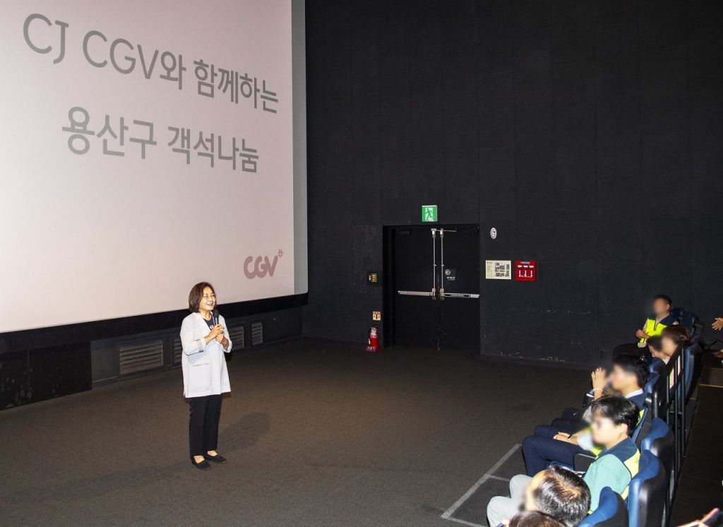 서울 용산구(구청장 박희영)가 27일 CGV용산 아이파크몰에서 경제적 형편상 문화생활이 어려운 지역 주민 126명을 초청해 무료 영화 상영 행사 ‘객석 나눔’을 열었다.