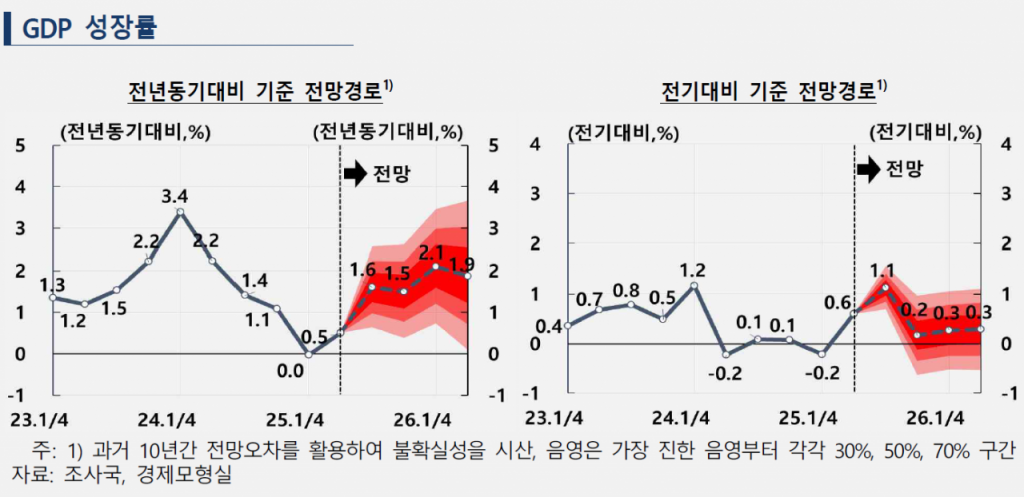 국내외 관세 변수에 따라 내년 성장률 전망이 많게는 0.2%포인트까지 하향 조정될 것으로 보인다. 우리나라는 반도체 등 주요 수출품에 대한 품목 관세 등을 확정하지 않았고, 중국 등 한국 경제에 영향이 큰 주요국 관세 협상 역시 변수로 남아있는 상황이다. 다만 관세 변수가 올해 성장률 전망에 미치는 영향은 제한적일 것으로 분석됐다. 시나리오별 관세 경로는 올해 4분기부터 기본전망 경로와 달라지기 때문이다.