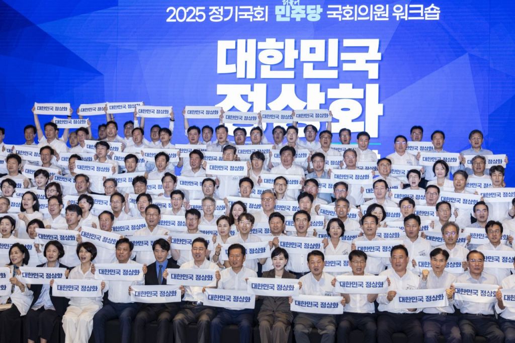 이재명 정부 들어 첫 정기국회를 앞둔 여당은 28일 의원 워크숍을 열고 '총단결'을 강조했다.