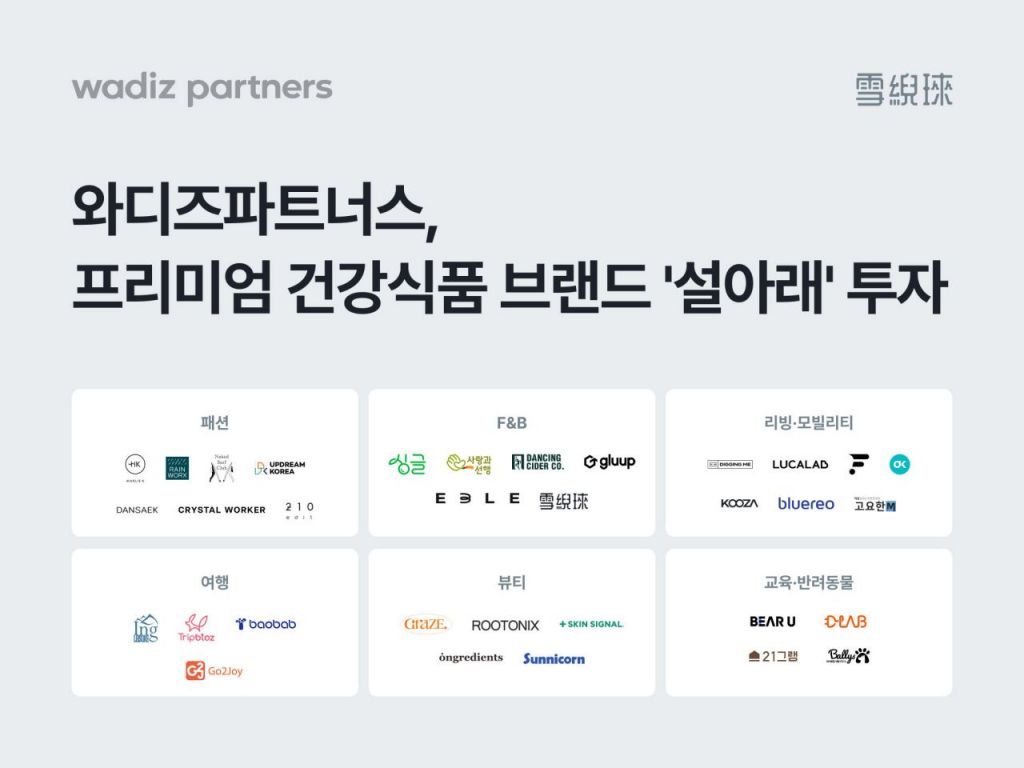 와디즈의 투자 전문 자회사 와디즈파트너스는 프리미엄 한방식품 브랜드 '설아래'에 신규 투자했다고 29일 밝혔다. 이번 투자는 와디즈파트너스가 운영하는 '넥스트브랜드' 프로그램을 통해 이뤄졌다. 와디즈 플랫폼에서 검증된 브랜드가 후속 투자와 성장으로 이어가는 대표적인 스케일업 사례다.
