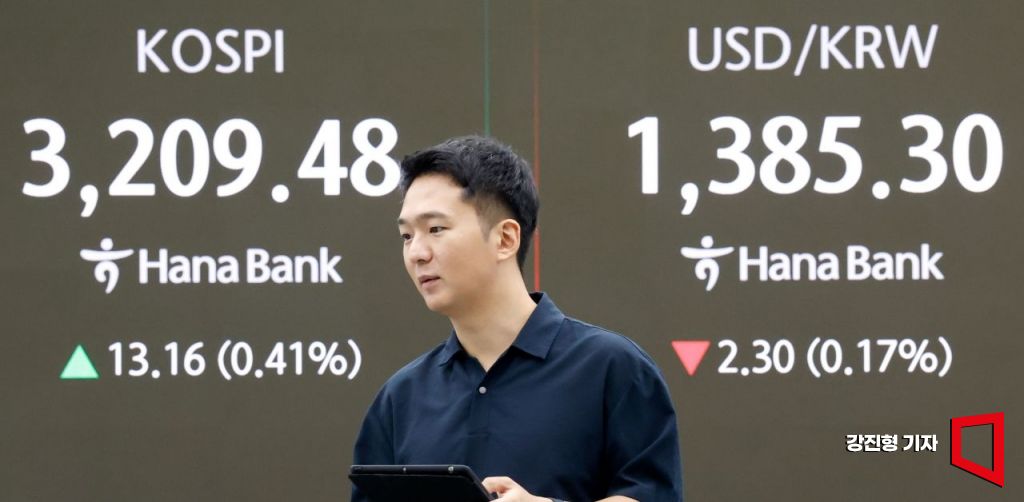 코스피 지수가 전 거래일 대비 12.48포인트 상승한 3208.80으로 장을 시작한 29일 서울 중구 하나은행 본점 딜링룸에서 딜러들이 업무를 보고 있다. 이날 원달러환율은 전 거래일 대비 2.6원 내린 1385원에 거래를 시작했다.