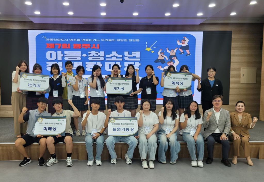 영주시 아동·청소년 정책한마당 본선대회 수상자들이 기념촬영하고 있다.