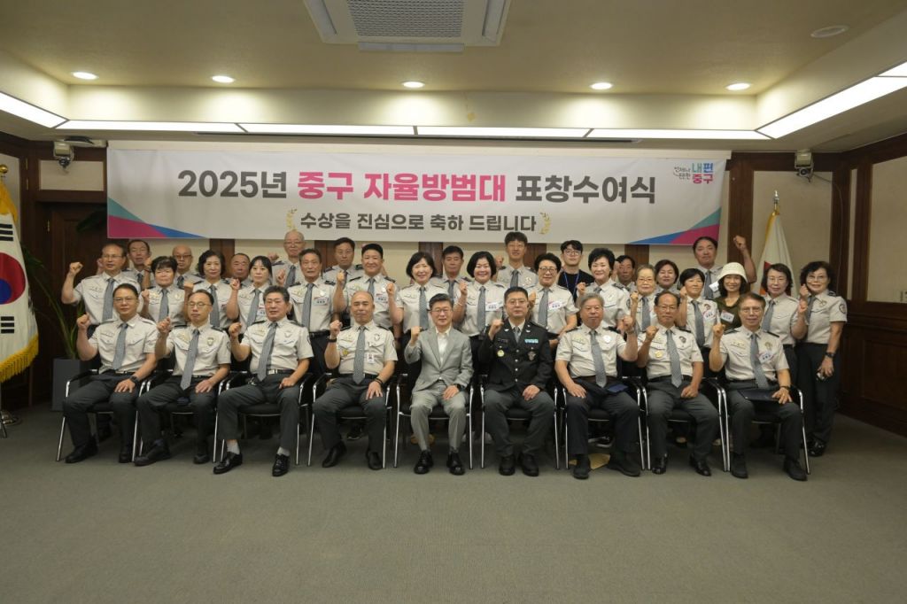 이와 함께 구는 28일 지역사회 범죄 예방과 치안 유지에 힘써온 자율방범대원 19명에게 표창장을 수여하는 행사를 가졌다. 이날 행사에는 수상자를 포함해 대원 40여명이 참석했다. 이번 표창은 20여년간 꾸준히 활동해온 대원은 물론, 방범 순찰뿐 아니라 수능일 수험생 수송 봉사 등 다양한 사회공헌 활동에 기여한 대원까지 포함됐다. 현재 중구에는 13개 대, 199명의 자율방범대원이 활동 중이다.