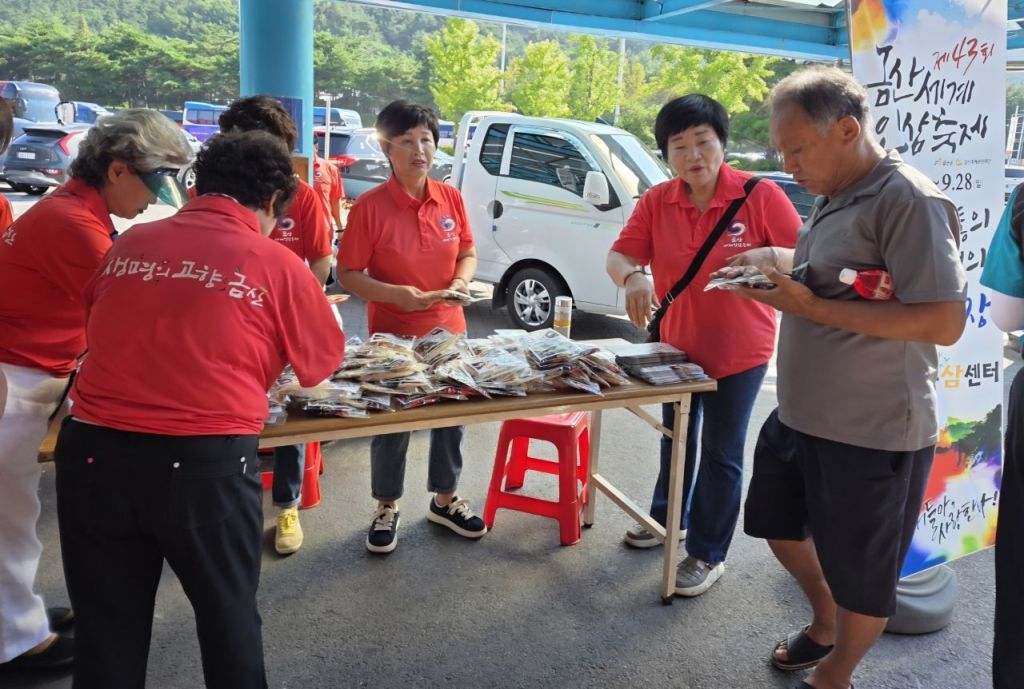 휴가철과 주말을 맞아 금산을 찾는 관광객과 고속도로 이용객을 대상으로 축제를 알렸으며 축제 안내 홍보물과 함께 금산수삼을 맛보는 시간도 가졌다.