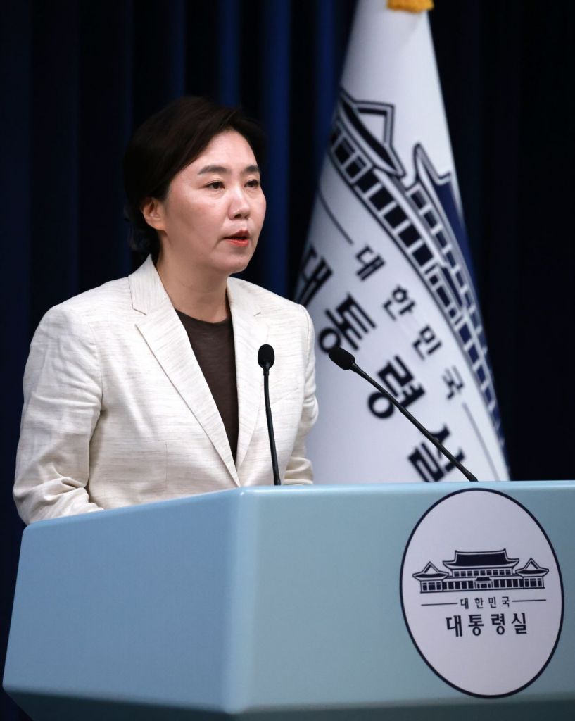 강유정 대통령실 대변인이 29일 서울 용산 대통령실 청사에서 국무회의 등과 관련해 현안 브리핑을 하고 있다. 연합뉴스