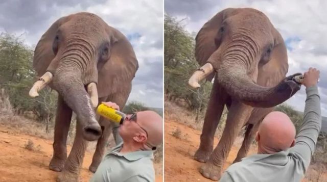 이 남성은 마시다 남은 현지 맥주 브랜드 '터스커(Tusker)'를 코끼리 코에 붓는 장면을 촬영해 자신의 인스타그램에 올렸다. 이어 영상 설명에 "엄니 달린 친구와 함께하는 맥주"라는 문구를 덧붙였다.