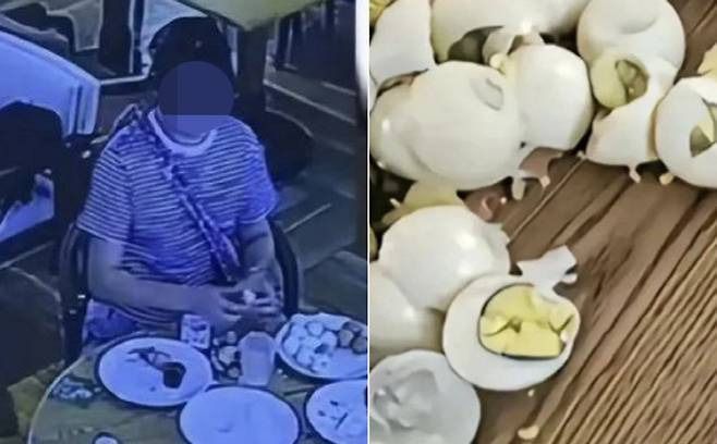 중국 산시성의 호텔에서 투숙객이 뷔페에 마련된 삶은 계란 수십개의 껍질을 깐 다음 사라져 비난을 받고 있다. 웨이보