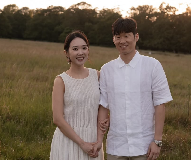 전 국가대표 축구선수 박지성(44)와 배우자 김민지(40) 전 SBS 아나운서(왼쪽). 김민지 SNS