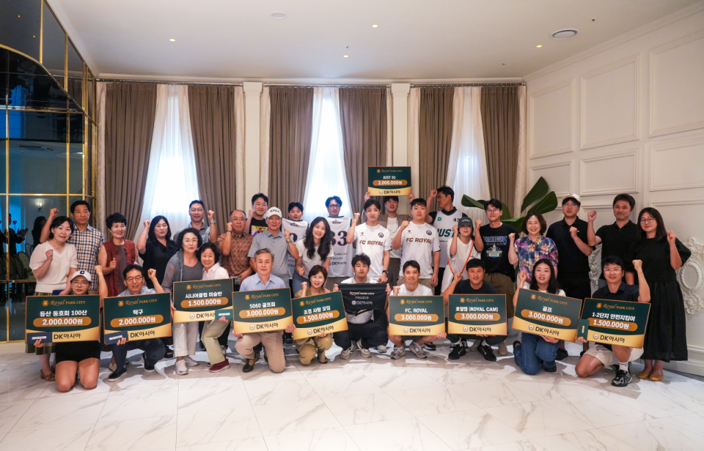 DK아시아는 로열파크씨티Ⅰ의 동호회 후원을 위해 회원 수 30명 이상, 동호회 활동 횟수, 평균 참여 인원, 모임의 목적 등을 기준으로 우수 동호회를 선정했다. 그 결과 골프, 축구·풋살, 캠핑, 농구, 등산 동호회 등 활발한 야외 활동 동호회부터 미술 동호회, 단지 조경을 사랑하는 동호회, 단지의 안전을 지키는 안전지킴이 동호회까지 총 12개의 다양한 동호회가 선정됐다.