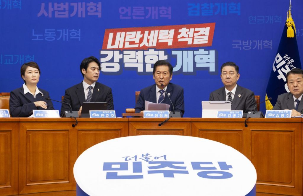 정청래 민주당 대표는 1일 국회에서 열린 최고위원회의에서 "개혁의 시기를 놓치면 반동의 힘으로 더 큰 퇴행으로 되돌아와서 그 피해는 국민이 입는다"며 신속한 개혁 입법 처리를 거듭 강조했다. 그간 검찰청을 해체해 수사(중수청)와 공소(공소청) 기능을 분리하도록 하는 안에는 당정이 합의를 이뤘으나, 중수청을 행정안전부에 둘 것이냐, 법무부에 둘 것이냐를 두고 정 장관과 민주당이 충돌했다.