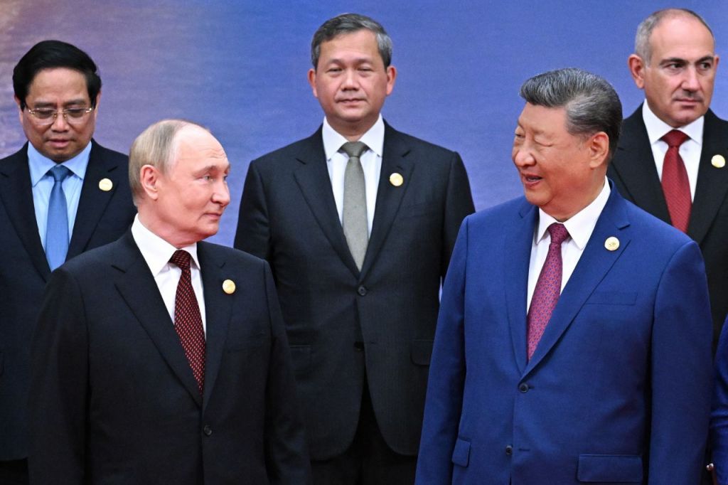 시진핑 중국 국가주석(오른쪽 앞줄)과 블라디미르 푸틴 러시아 대통령(왼쪽 앞줄)이 지난달 31일 중국 톈진에서 개막한 상하이협력기구(SCO) 정상회의에서 기념 촬영을 하며 대화하고 있다. 톈진=타스연합