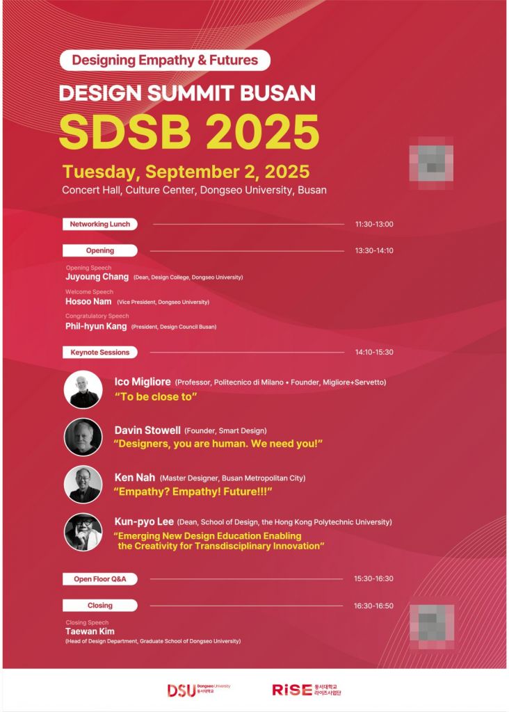 이러한 시점에서, 부산의 대표적 디자인 특성화 대학이자 국내 유일의 WDO(세계디자인기구) 회원교인 동서대학교에서 열리는 이번 행사는 글로벌 디자인 담론과 지역 혁신·상생을 연결하는 창의적 플랫폼이 될 것으로 기대를 모으고 있다.