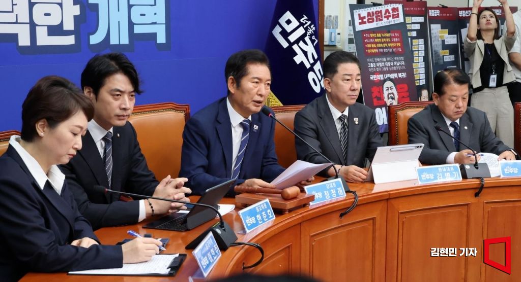 정청래 더불어민주당 대표가 1일 국회에서 열린 최고위원회의에서 발언하고 있다. 김현민 기자
