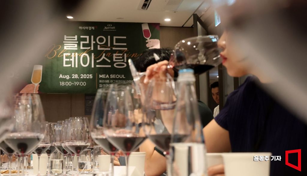 전 세계의 다채로운 와인을 한자리에서 만날 수 있는 '2025 글로벌 와인 앤 푸드 트립'이 28일 서울 여의도 메리어트 호텔에서 열렸다. 행사에 참석한 주요 유통업체 와인 소믈리에들이 블라인드 테이스딩을 하고 있다. 2025.08.28 윤동주 기자