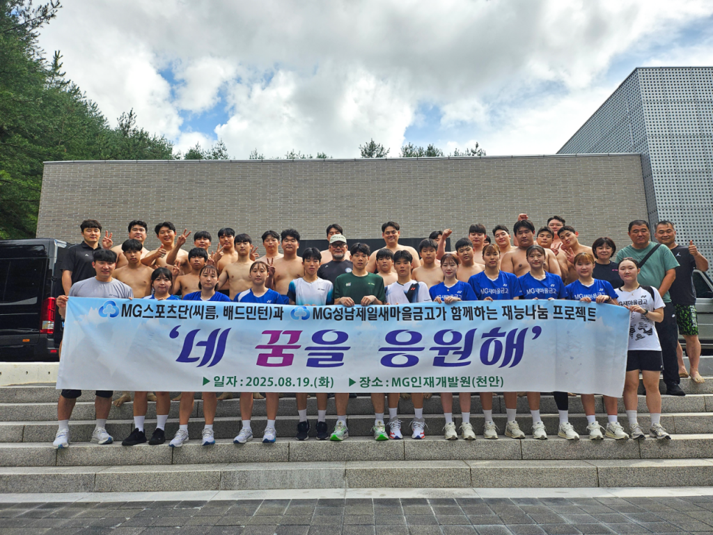 재능기부는 지난달 19일 충남 천안 MG인재개발원에서 경기 성남 관내 학교 씨름단 및 배드민턴단 선수 13명을 대상으로 이뤄졌다. 이날 행사에서는 씨름단 이승삼 감독, 천하장사 장성우 선수를 비롯해 한라장사 오창록 선수 등과 배드민턴단 한상훈 감독, 성아영 선수 등 MG스포츠단 선수 및 코칭스텝 26명이 참여했다. 시범경기, 원포인트 레슨 등 다양한 프로그램을 진행했다. 훈련 이후 사인회를 통해 선수를 꿈꾸는 학생들의 동기 부여 및 자존감 향상을 위한 멘토링 시간도 가졌다.