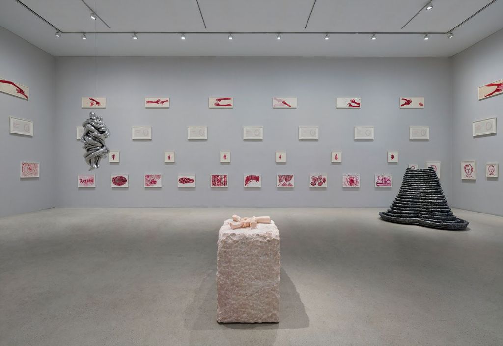 루이즈 부르주아의 개인전 'Rocking to Infinity'가 열리는 서울 종로구 국제갤러리 K3가 붉은빛으로 물들었다. 부르주아는 작품에서 빨간 '과슈'(불투명 수채화 물감)를 주로 사용했는데, 관련해서 생애 후반 20여년에 걸쳐 작업한 조각 및 드로잉 50여점을 전시했다.