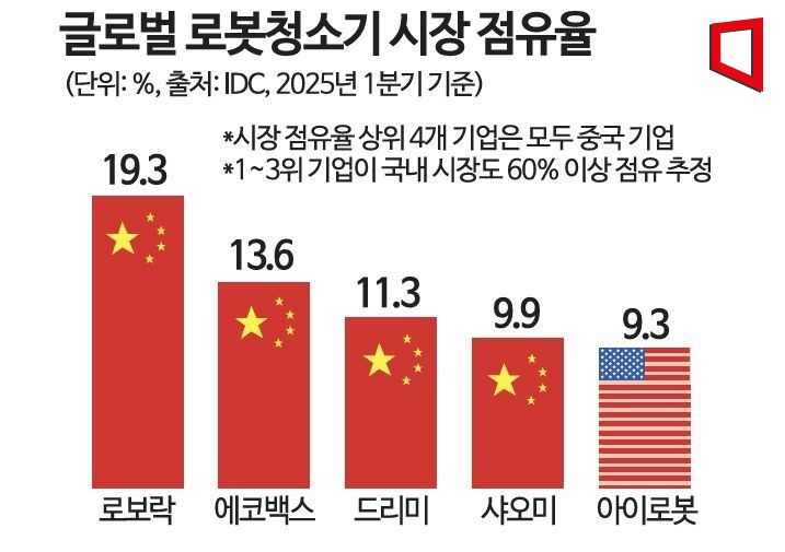 로봇청소기 시장은 '핫 아이템'으로 꼽힌다. 삼성과 LG가 각각 자동 직배수 방식의 '비스포크 AI 스팀', 빌트인형 '히든 스테이션'과 프리스탠딩형 '오브제 스테이션'을 공개한다. 삼성은 RGB 카메라·IR LED 센서를 장착해 유색·투명 액체까지 인식하는 기능을 탑재했고, LG는 공기압 기반 오수 배출 시스템과 숨김형 빌트인 디자인을 강조했다. 반면 글로벌 시장을 주도하는 것은 로보락(19.3%)·에코백스(13.6%)·드리미(11.3%) 등 중국 '로청기 3대장'이다. 시장조사기관 IDC에 따르면 올해 1분기 글로벌 점유율 1~4위 중 3곳이 중국 기업으로, 한국 시장에서도 합산 60% 이상 점유율을 기록했다. 이들 기업은 이번 전시회에서도 신제품과 로봇 공학 쇼케이스를 통해 바닥·창문·잔디 관리까지 아우르는 신제품을 대거 공개한다.