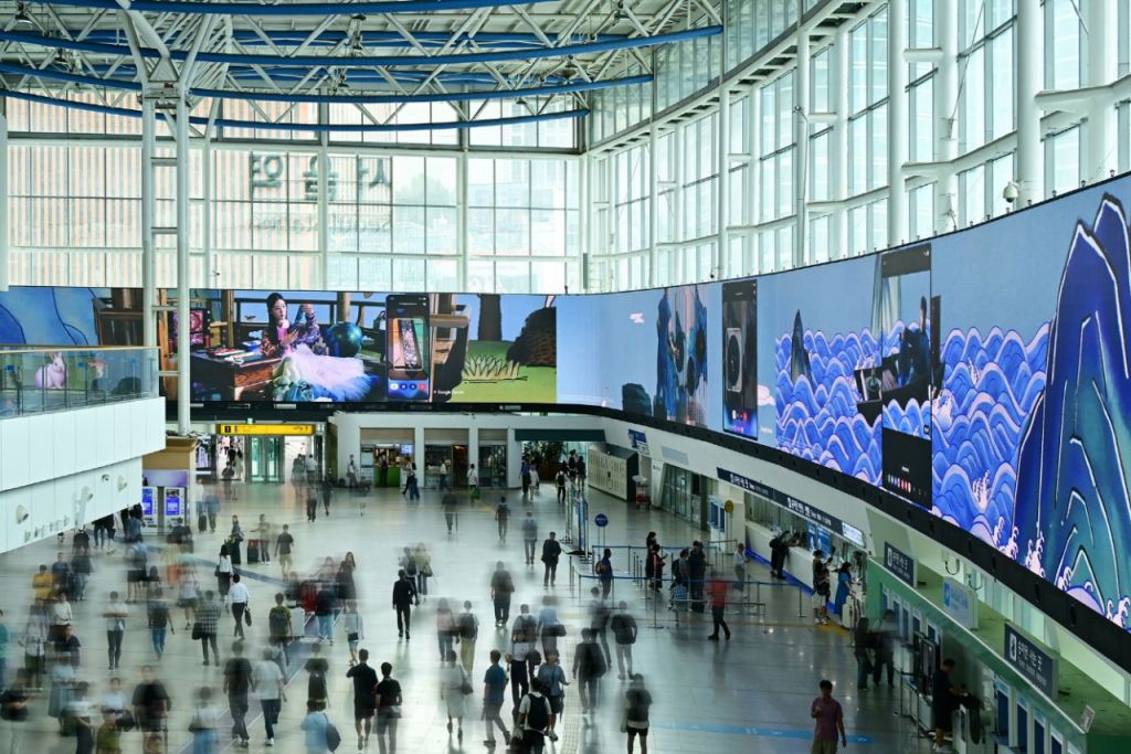 삼성전자는 지난 1일부터 서울역에서 역사 내부를 파노라마 형태로 둘러싼 초대형 미디어아트 광고를 시작했다. 총 길이 91m, 높이 5.5m, 면적 610.5㎡의 압도적 크기로 몰입도 높은 영상을 시청할 수 있다.