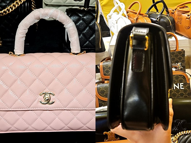 명품브랜드 미우미우, 셀린느, 구찌 등 가방이 놓여져 있다. 세일도 진행하는 모습이다. 박재현 기자.