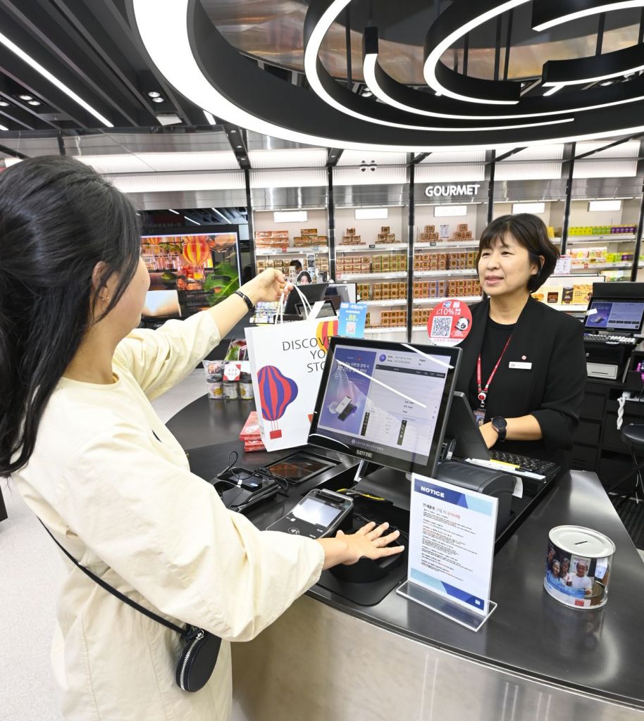 4일 서울 강서구 김포공항 국제선 롯데면세점에서 공항이용객이 바이오정보 결제 서비스를 이용해 면세품을 구매하고 있다. 한국공항공사