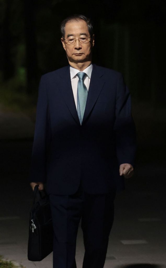 윤석열 전 대통령의 내란 방조 및 위증 등 혐의를 받는 한덕수 전 국무총리가 지난달 27일 구속영장이 기각돼 경기도 의왕 서울구치소를 나서고 있다. 연합뉴스