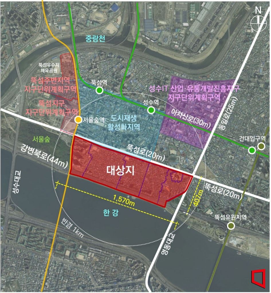 이후 2021년 신속통합기획 대상지로 선정되면서 사업이 속도를 내기 시작했다. 서울시와 성동구는 지난 2023년 4개 지구별로 사업 추진이 가능하도록 지구단위계획 변경안을 마련했고, 2024년 최고 높이를 250m(60층 이내)로 허용했다. 지난해 3월 1, 2지구 정비계획 결정 주민 공람이 이뤄졌고 같은해 8월과 10월 4지구와 3지구 주민공람을 마쳤다. 면적이 가장 큰 1지구에는 3014가구, 제2지구는 2609가구, 3지구와 4지구에 각각 2213가구, 1592가구가 들어선다. 성수에서 한강으로 이어지는 선형공원, 단지 내 입체덱 등을 조성한다.