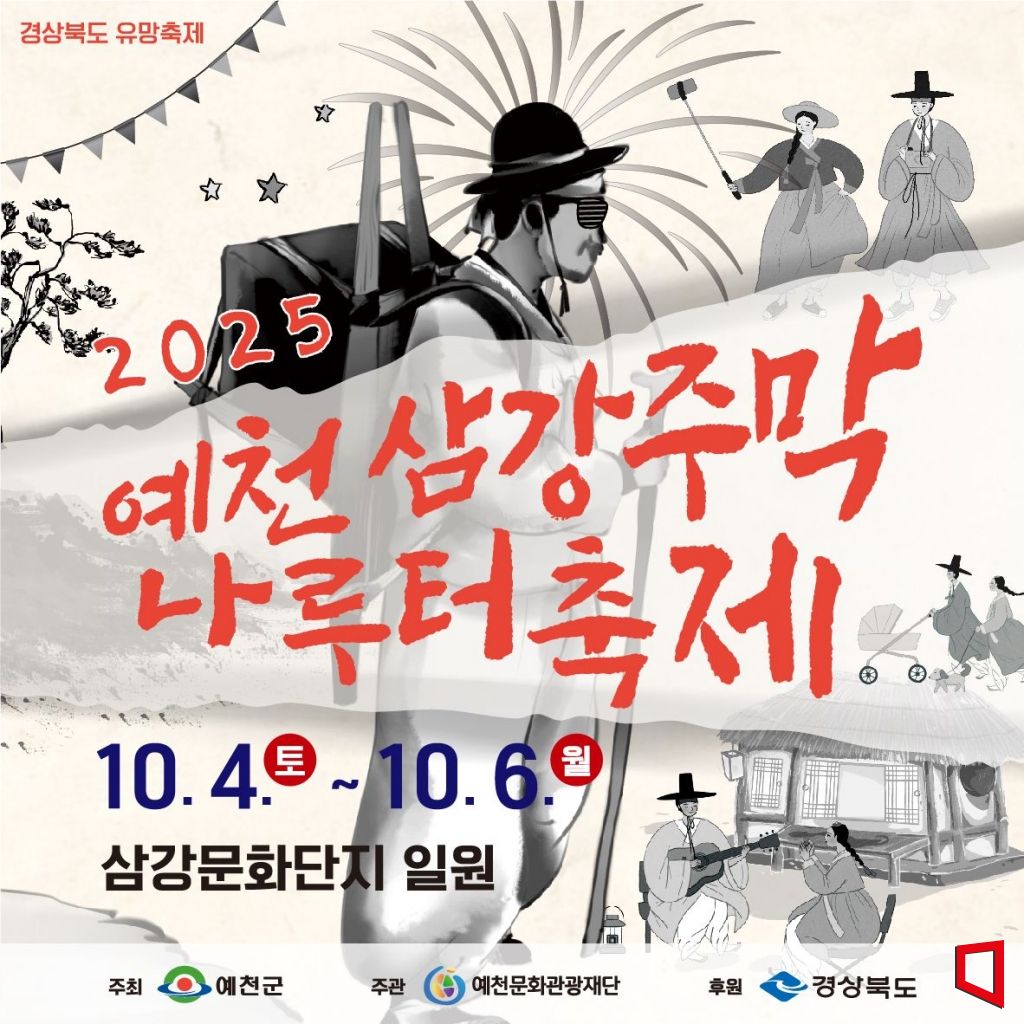 경북 예천군의 대표 가을 축제인 '2025 예천삼강주막나루터축제'가 지역 문화예술인들에게 활짝 열린다. (재) 예천문화관광재단(이사장 김학동 예천군수)은 오는 12일까지 축제 무대를 함께할 공연팀을 모집한다.