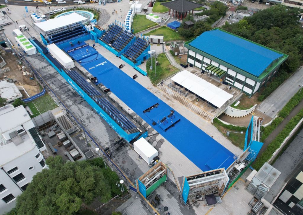 지난 7일 광주 동구 국립아시아문화전당 5·18민주광장에 2025 세계양궁선수권대회 경기장이 설치돼 있다. 연합뉴스