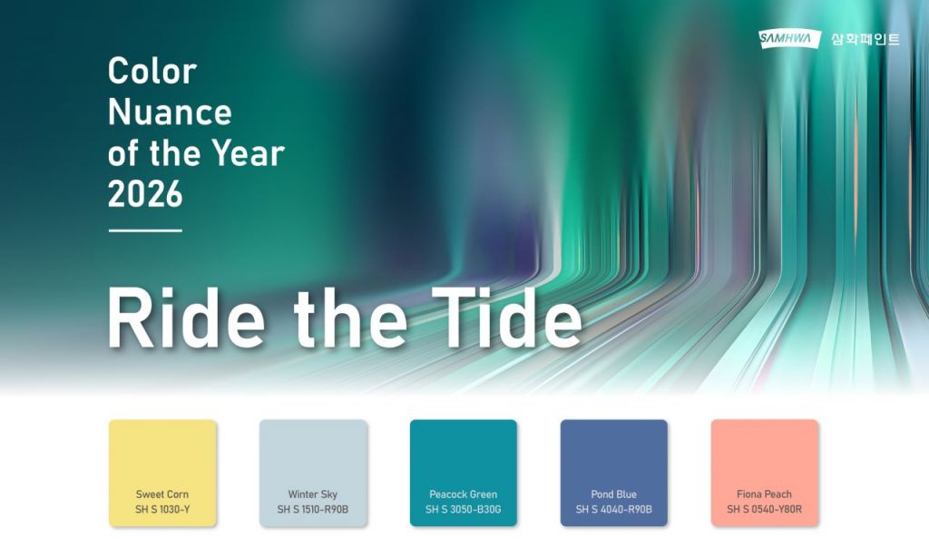 삼화페인트공업 컬러디자인센터는 2026년을 위한 올해의 컬러뉘앙스 키워드를 '라이드 타이드(Ride the Tide)'로 정하고 다섯 가지 컬러를 선정했다고 8일 밝혔다.