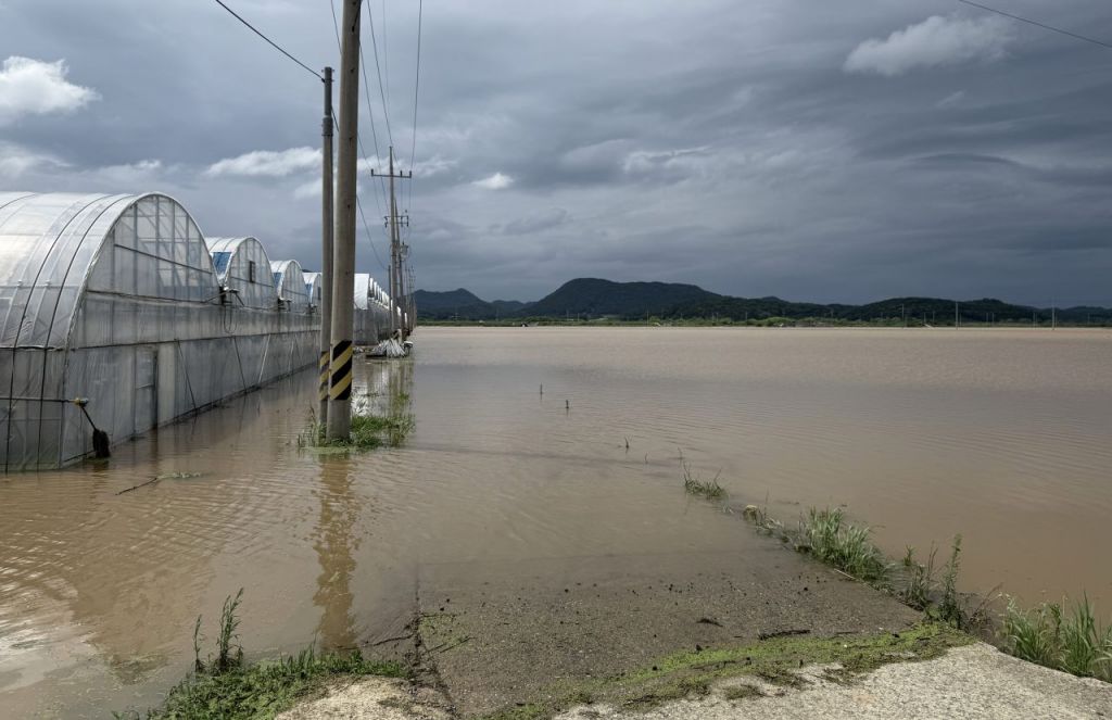 폭우 피해로 침수 피해를 입은 나주 동강면 벼 및 딸기하우스 현장. 전남도 제공