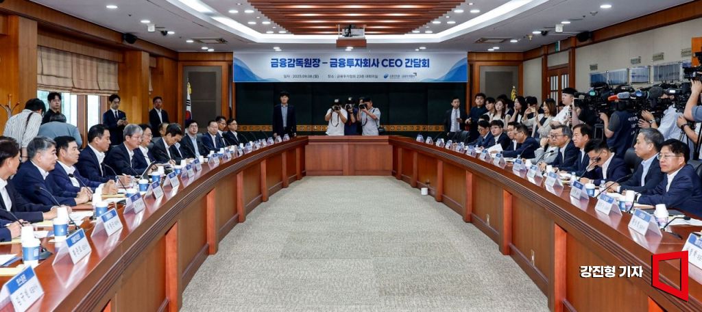 이찬진 금융감독원장이 8일 서울 여의도 금융투자협회에서 열린 '금융감독원장-금융투자회사 CEO 간담회'에 참석해 모두발언 하고 있다.