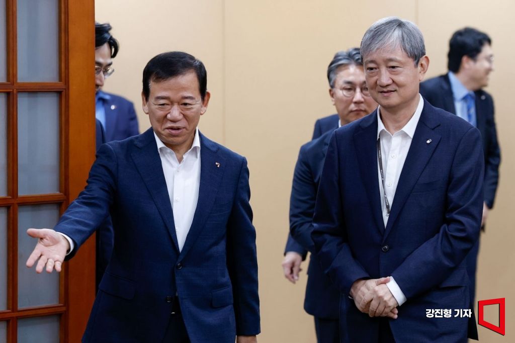 이찬진 금융감독원장(오른쪽)과 서유석 금융투자협회장이 8일 서울 여의도 금융투자협회에서 열린 '금융감독원장-금융투자회사 CEO 간담회'에 참석하기 위해 간담회장으로 들어서고 있다.