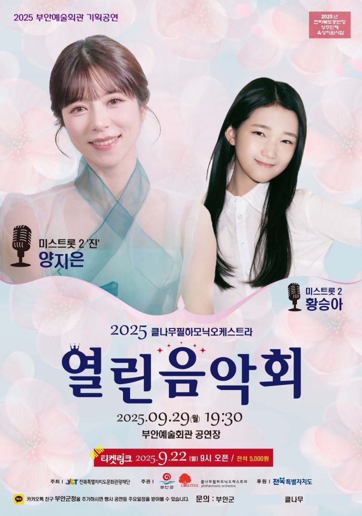 전북 부안군이 오는 29일 오후 7시 30분 부안예술회관 공연장에서 '2025 열린음악회 공연'이 열린다.