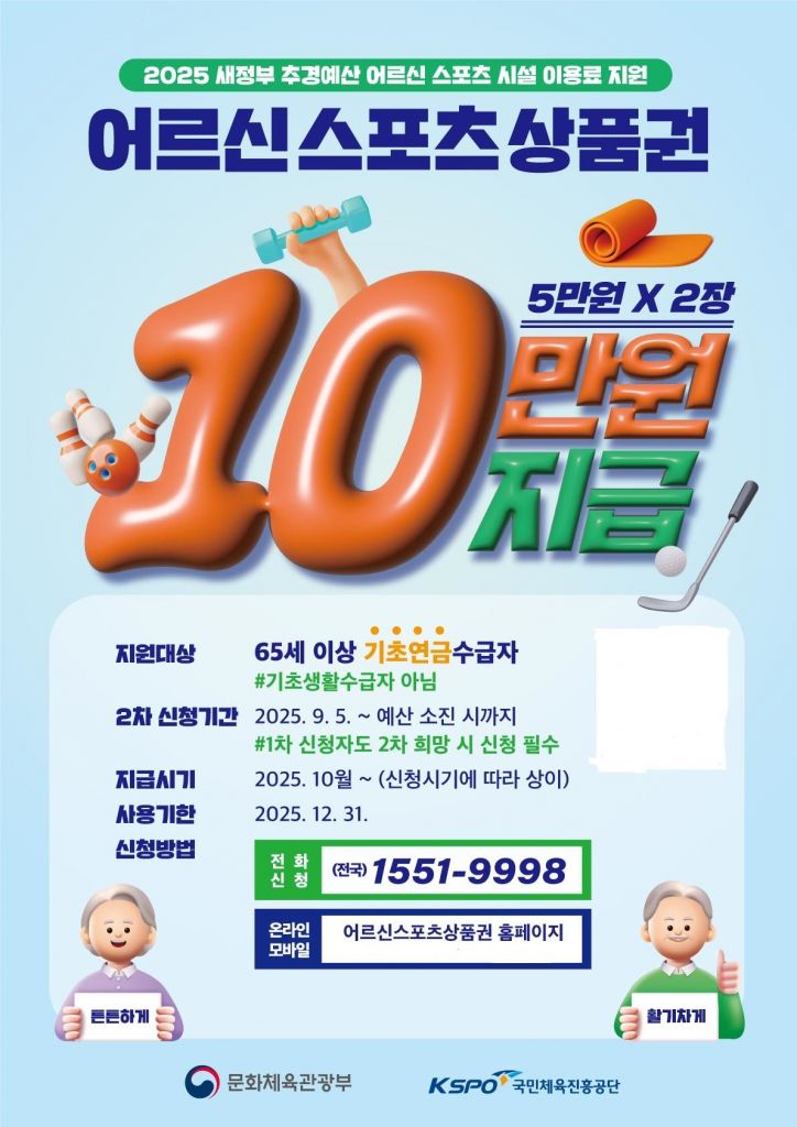 이번 지원은 65세 이상 기초연금 수령 군민에게 1인당 5만 원 상당의 스포츠 상품권(모바일 상품권) 2장씩 총 10만 원이 지급된다.