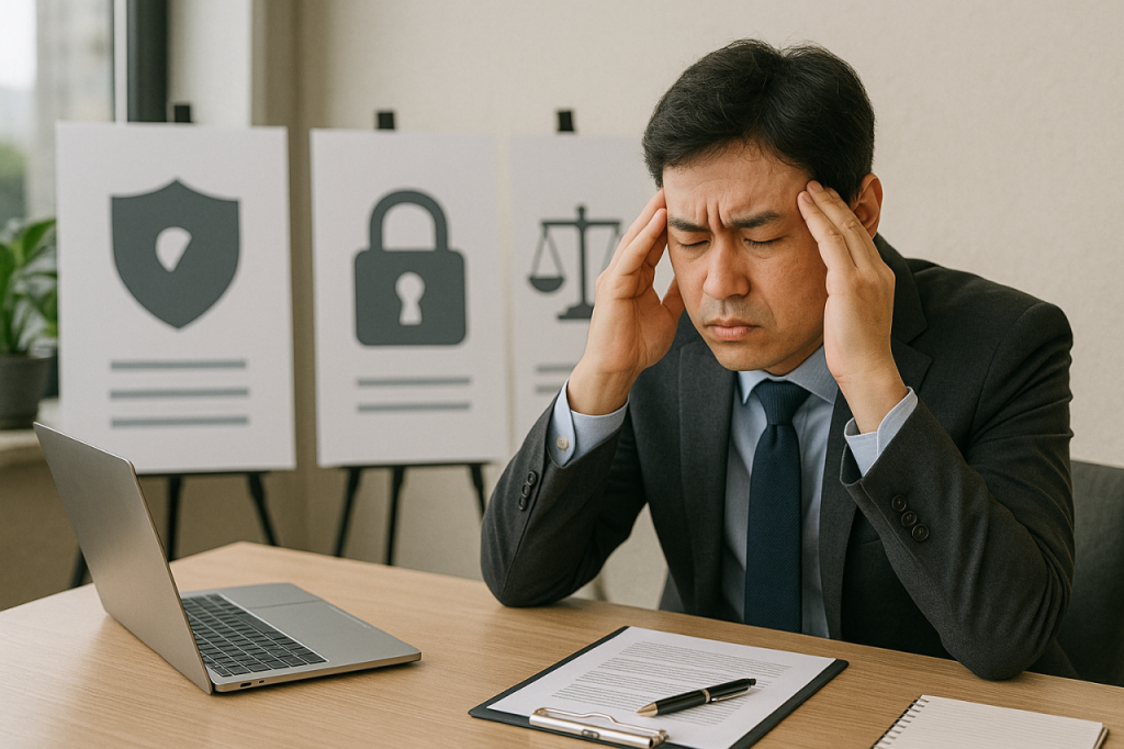 잇단 소비자 보호장치 강화에 보험사들이 부담을 느끼는 모습을 챗GPT가 묘사한 그림. 챗GPT 생성 이미지