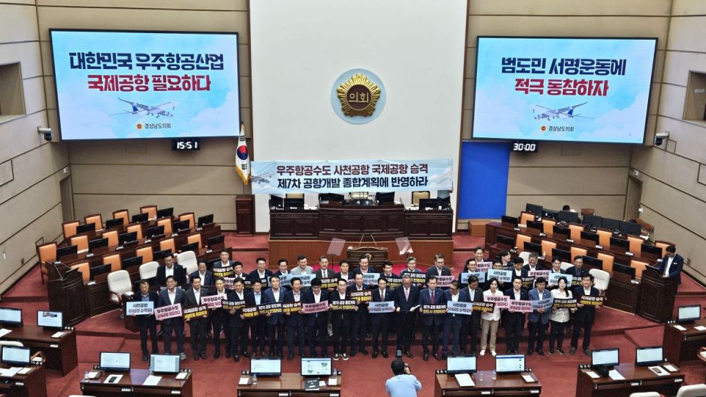 의회는 "우주항공청을 중심으로 사천의 글로벌 우주항공 거점을 구축하고자 각고의 노력을 기울이고 있다"라며 "이를 위해 국제공항 인프라 확보는 매우 중요하고 필수적이지만 사천공항이 국제공항으로 기능할 수 있도록 국가 차원의 조치가 이뤄지지 않고 있다"고 했다.