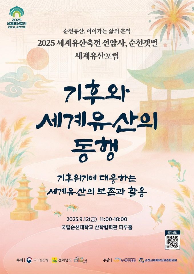 순천시와 순천시 세계유산보전협의회가 공동으로 개최하는 '기후위기 대응 세계 유산 보전' 포럼이 오는 12일 순천대학교에서 열린다. 사진은 행사를 알리는 포스터. 순천시 제공