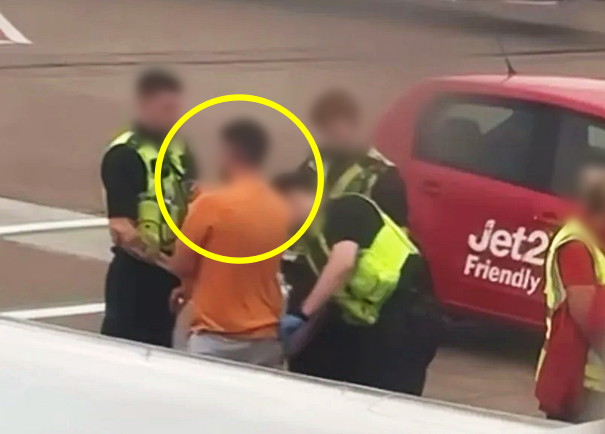 비행기에서 난동을 부리다 체포된 남성. 더선