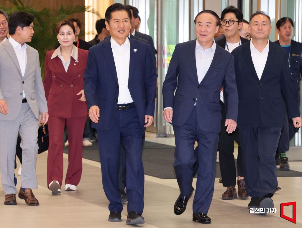 정청래 더불어민주당 대표가 10일 경기 평택시 삼성전자 팽택캠퍼스를 방문해 반도체산업 발전을 위한 현장 간담회를 하고 있다. 2025.9.10 국회사진기자단